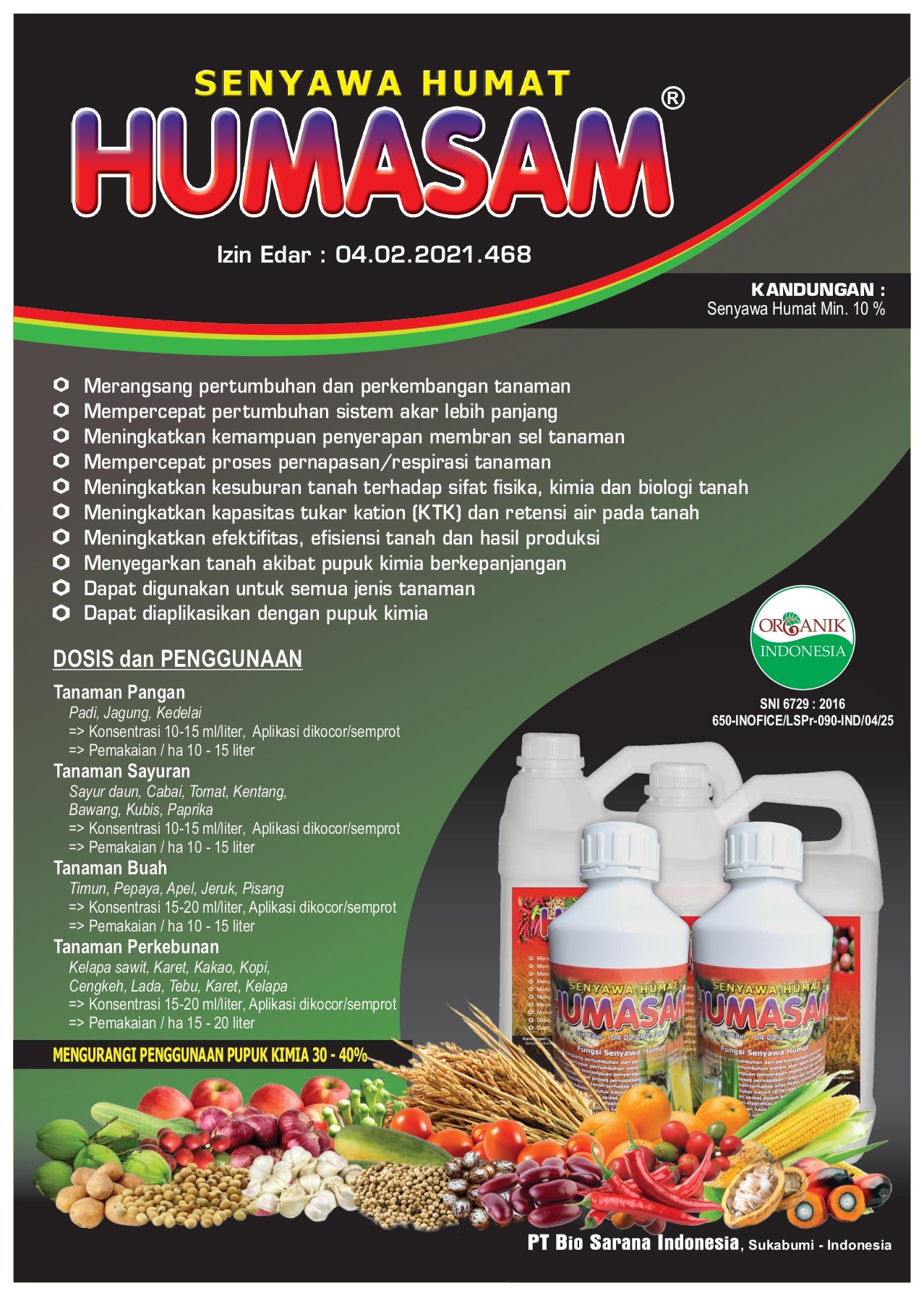 Penggunaan pembenah tanah ditujukan untuk mempercepat pemulihan kualiatas tanah dari mulai kualitas fisik, kimia, dan biologi tanah. Dengan pemberian HUMASAM, produksi dan produktivitas tanah beserta tanaman jauh lebih tinggi dan optimum.